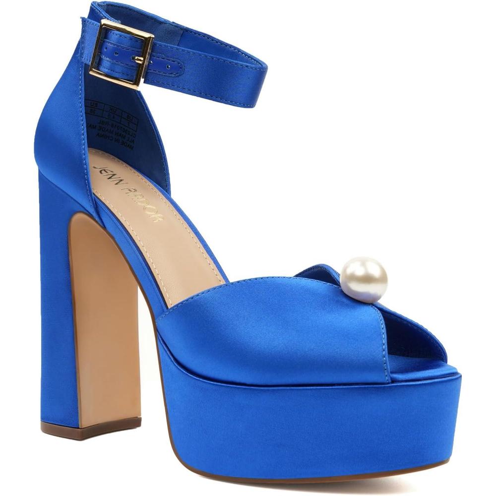 JENN ARDOR Platform High Heels for Women Sexy Peep Toe Chunky Heels Comfortable 4.5inch Block Heeled Sandals Pumps Ankle Strap Wedding Party Evening Dress Shoes(Royal Blue)