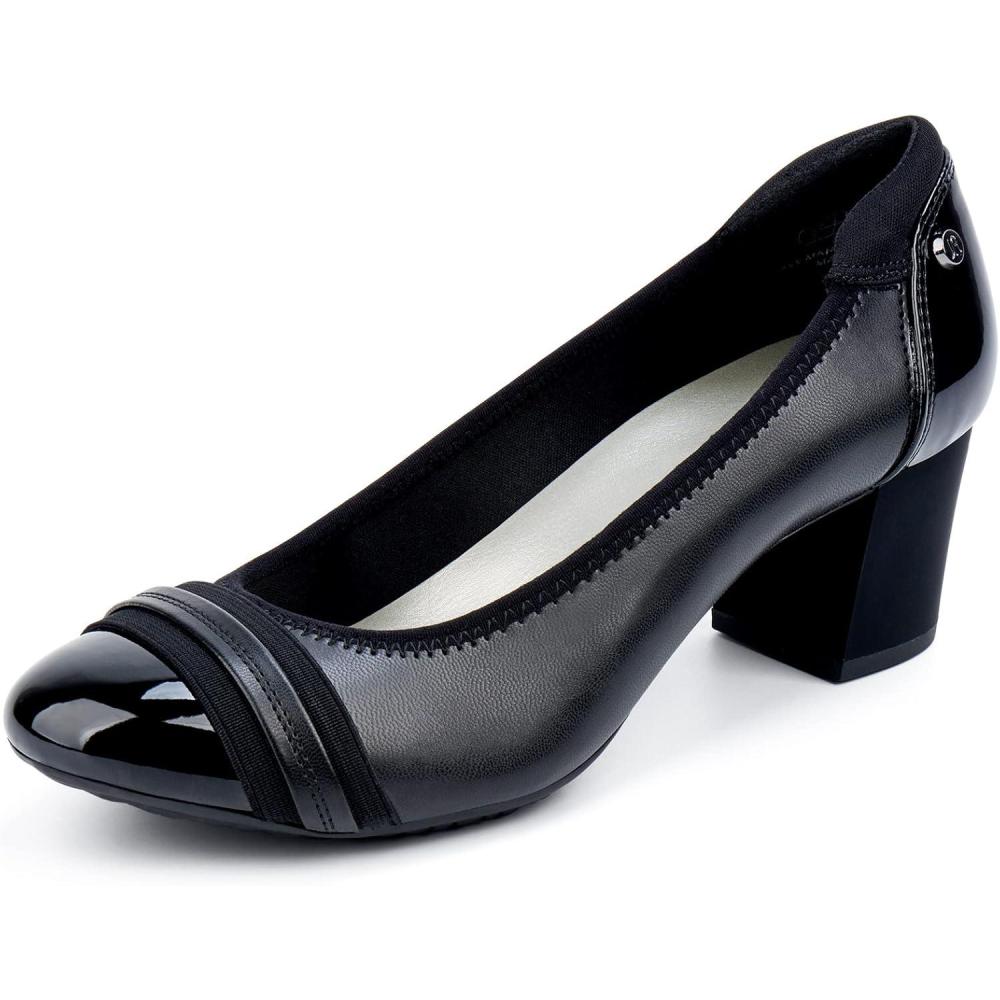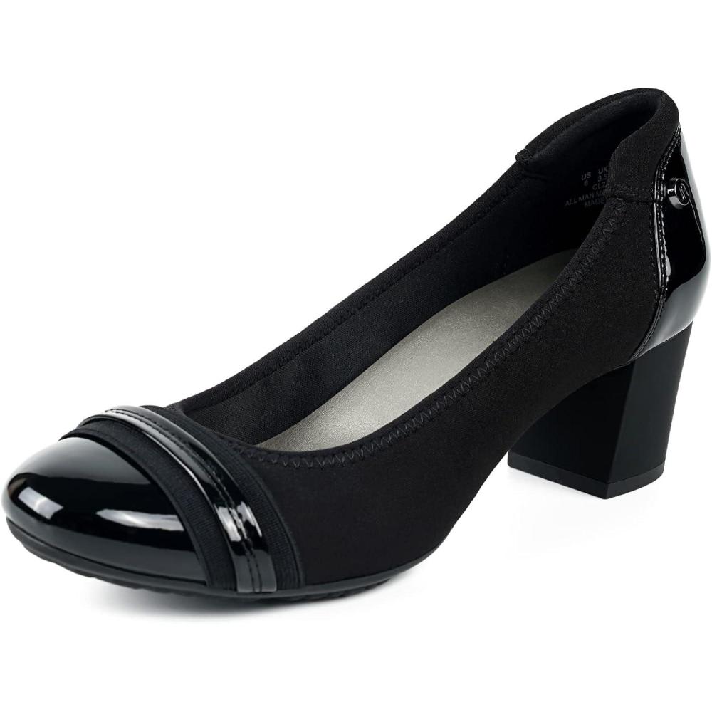 JENN ARDOR Chunky Block Pumps for Women Slip On Low Heel Closed Round Toe Dress Shoes Classic Mid Square Shoes Wedding Party Office Lady Shoes 2 inch(Black 1)