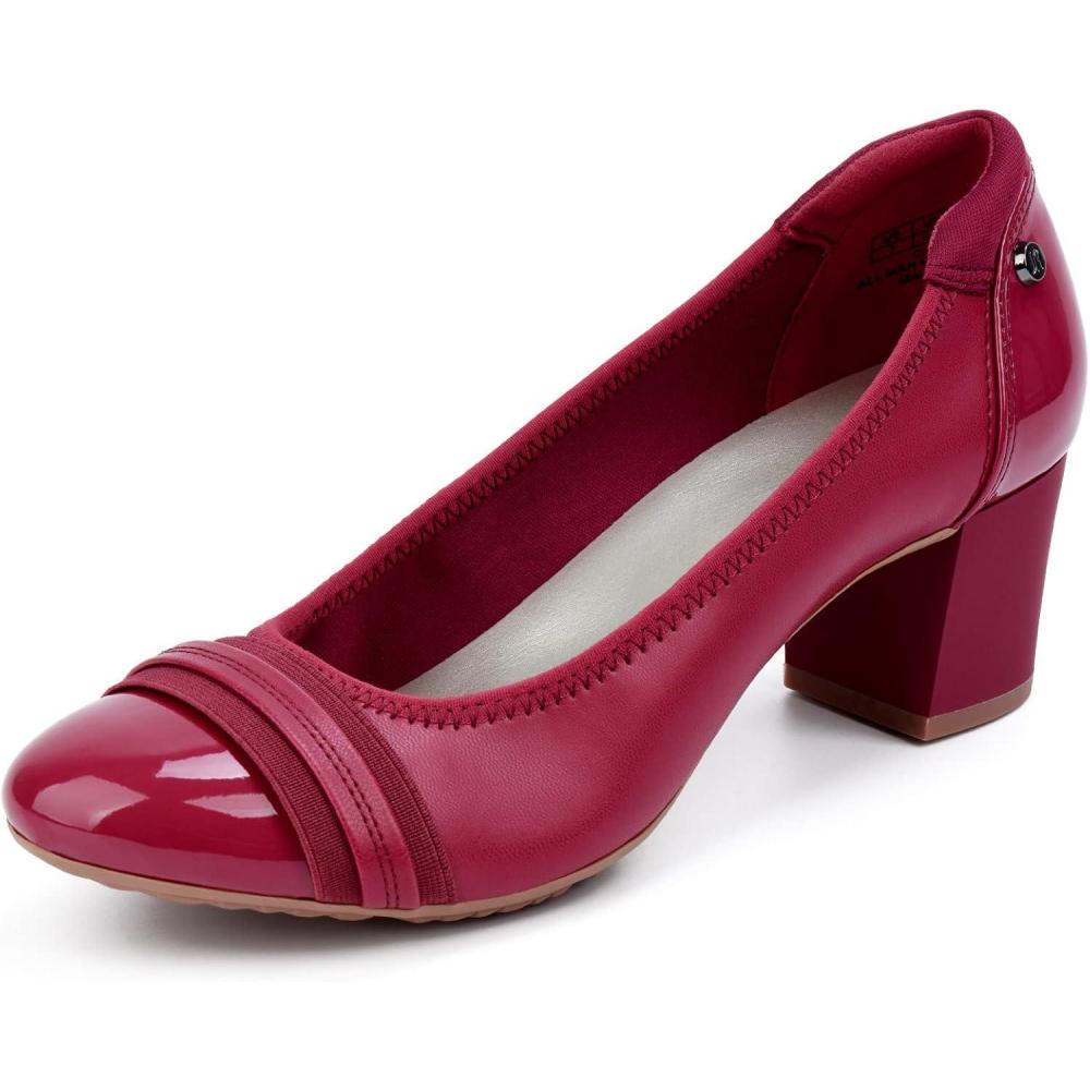 JENN ARDOR Chunky Block Pumps for Women Slip On Low Heel Closed Round Toe Dress Shoes Classic Mid Square Shoes Wedding Party Office Lady Shoes 2 inch(Red)